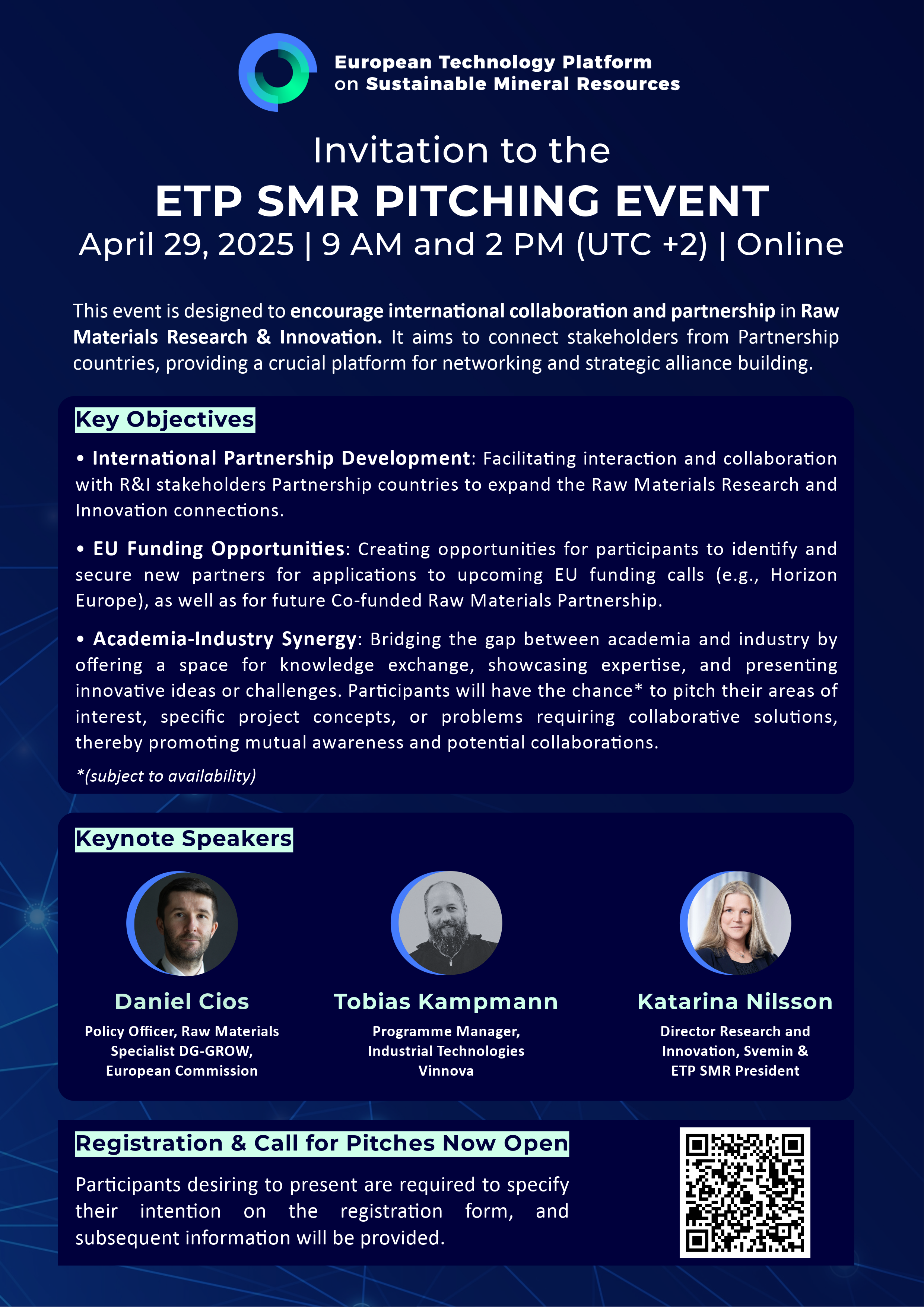 This event will connect stakeholders from Partnership countries, offering a platform for networking and building strategic alliances in preparation for upcoming EU funding calls and RM Partnership. International Partnership Development: Facilitating interaction and collaboration with R&I stakeholders Partnership countries to expand the Raw Materials Research and Innovation connections. EU Funding Opportunities: Creating opportunities for participants to identify and secure new partners for applications to upcoming EU funding calls (e.g., Horizon Europe), as well as for future Co-funded Raw Materials Partnership. Academia-Industry Synergy: Bridging the gap between academia and industry by offering a space for knowledge exchange, showcasing expertise, and presenting innovative ideas or challenges. Participants will have the chance* to pitch their areas of interest, specific project concepts, or problems requiring collaborative solutions, thereby promoting mutual awareness and potential collaborations. *(subject to availability)